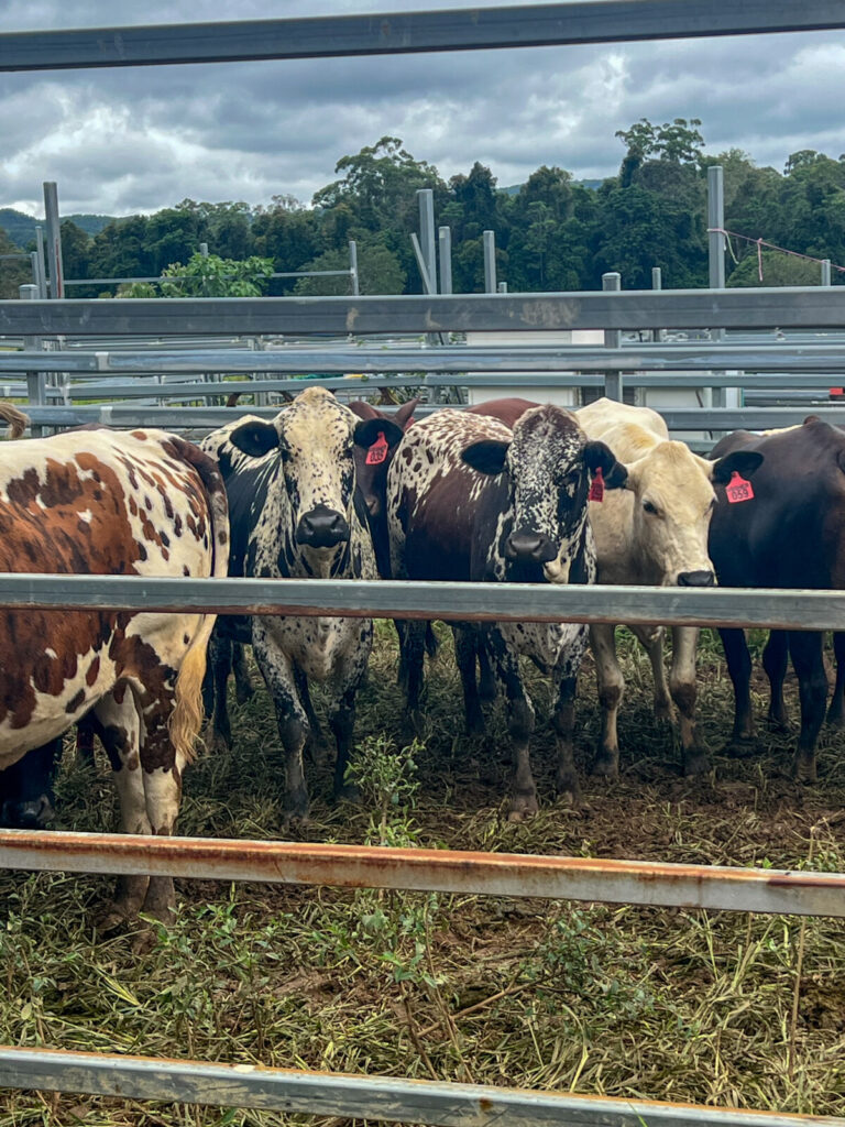 We currently run 380 head of Nguni cattle – a breed chosen not for their colour, but for their suitability to the challenges we face with our climate and high parasite numbers in the Sunshine Coast Hinterland. Originally from Africa, Nguni cattle are better suited to withstand our hot Australian sun and are naturally resistant to parasites such as ticks. This resistance is highly beneficial, as it eliminates the need for regular chemical dips, which are commonly required for other cattle breeds in Australian livestock farming.